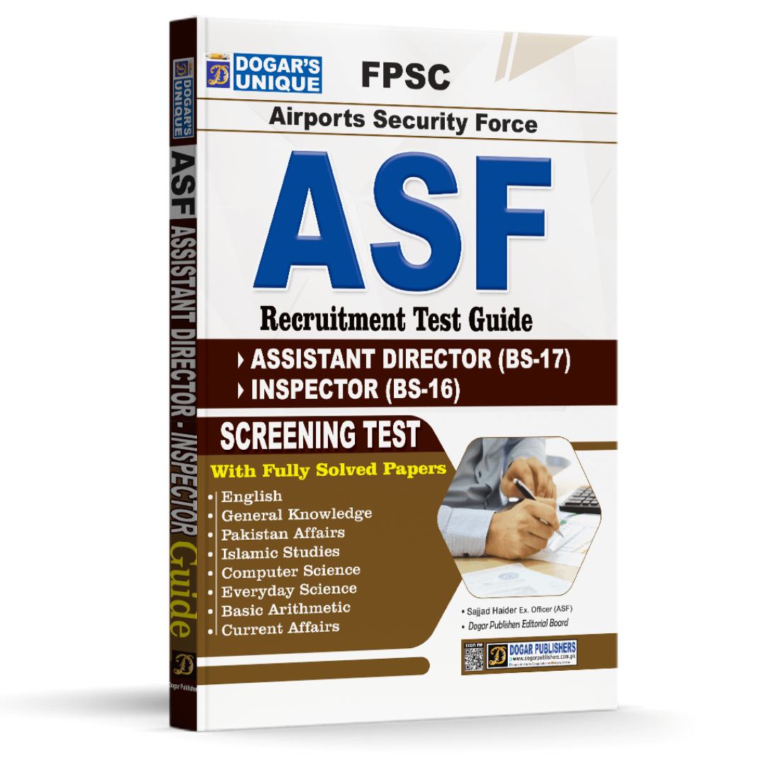 Prepare confidently for FPSC ASF recruitment with the ASF Recruitment Test Guide (Screening Test) by Dogar Publishers. This comprehensive guide is specially designed for Assistant Director (BS-17) and Inspector (BS-16) aspirants appearing in the ASF screening test.