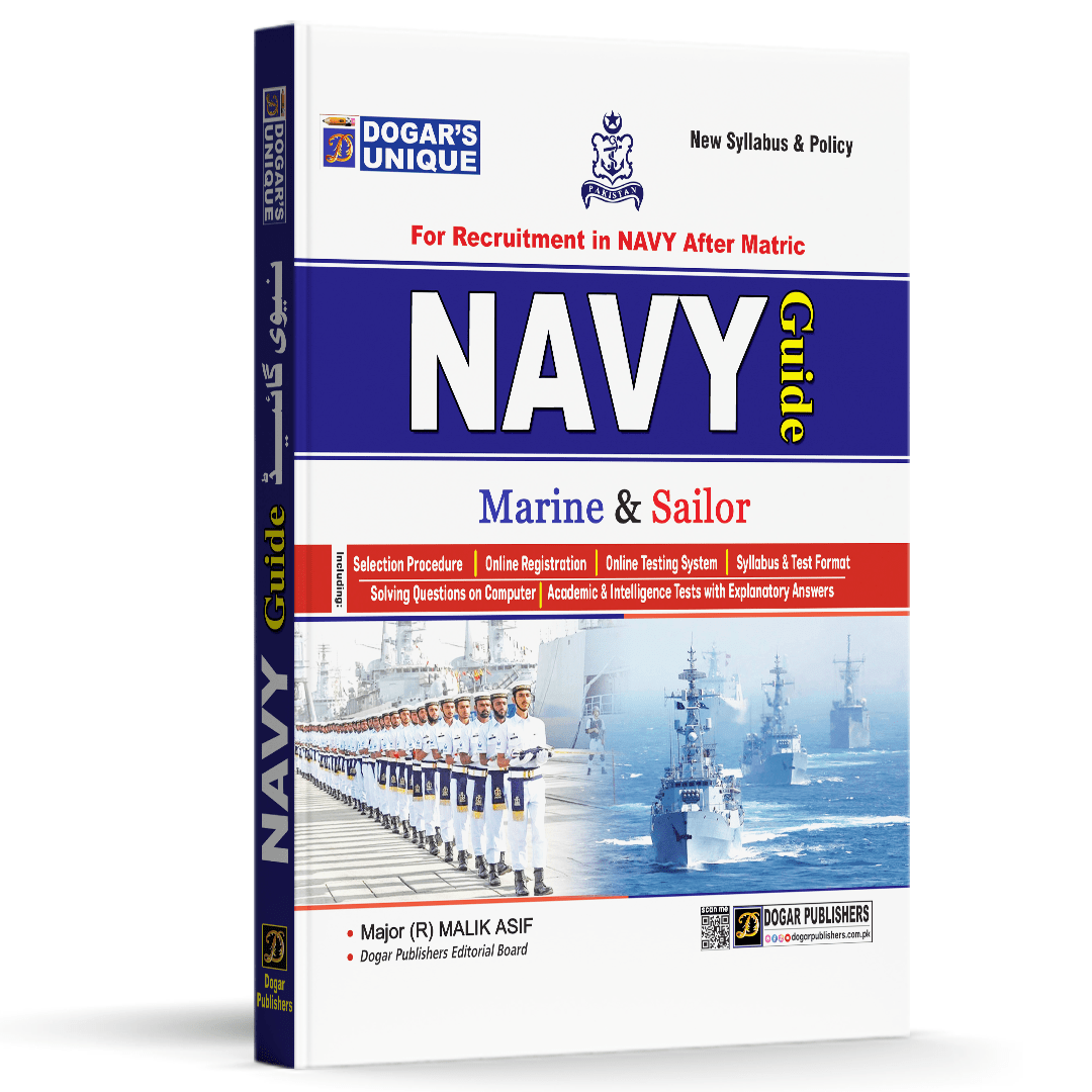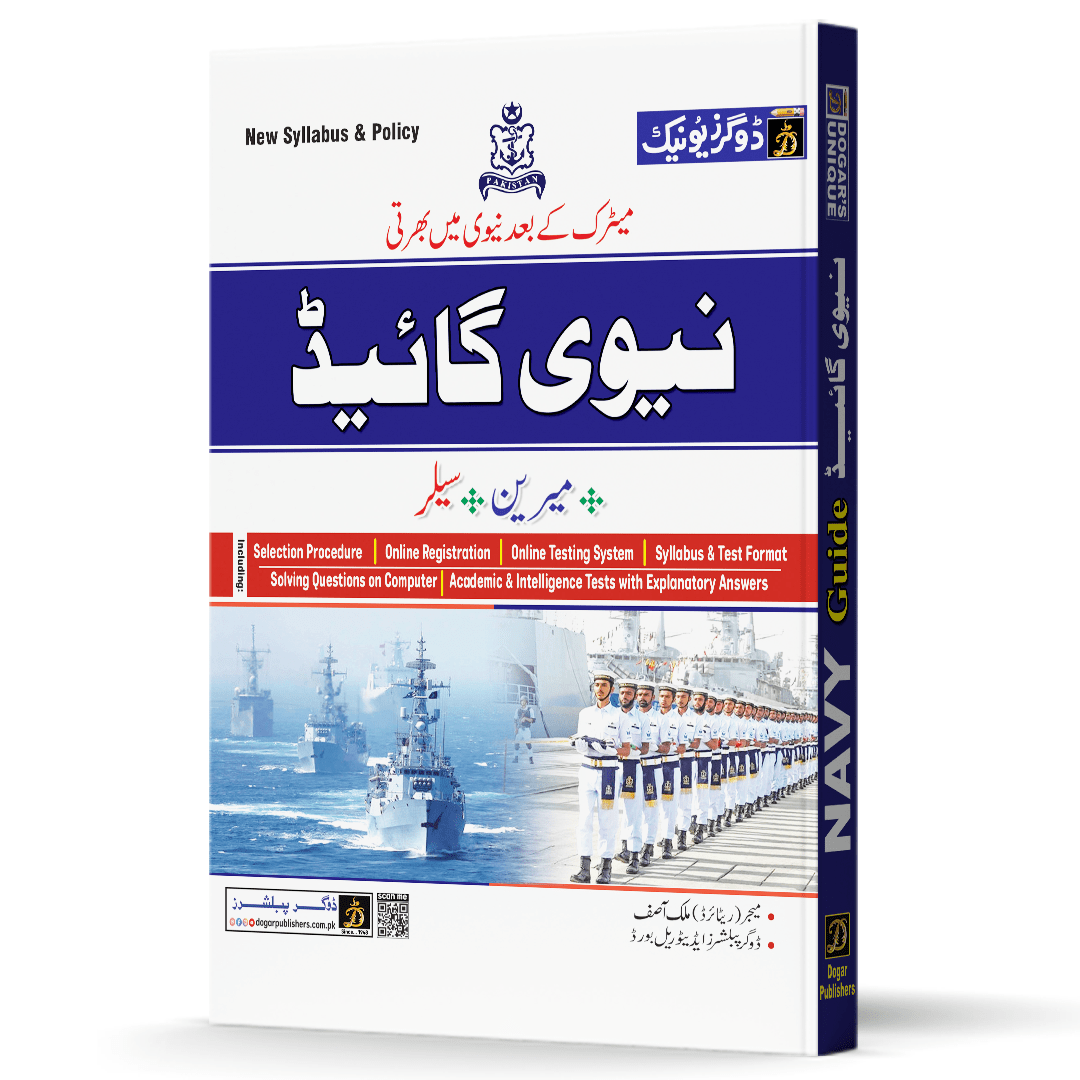 Start your journey towards a proud career in the Pakistan Navy with this comprehensive Navy Guide (After Matric) by Dogar Publishers. Specially designed for matric pass candidates, this guide provides complete preparation for Navy recruitment tests along with essential academic and intelligence-based practice.Whether you are applying for Sailor, Technical, Marine, Naval Police, or other entry-level positions, this book helps you understand the test format, strengthen concepts, and boost confidence for selection.